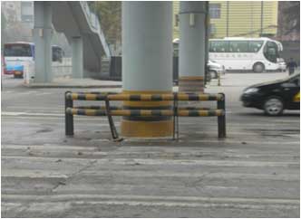 加大橋墩尺寸,或把墩柱底部灌注成體積非常大的實體塊,又或者采用鋼管圍欄的防護方式,雖然保護了橋梁的安全,但卻占用了車道,在某些方面增加了交通事故風(fēng)險。