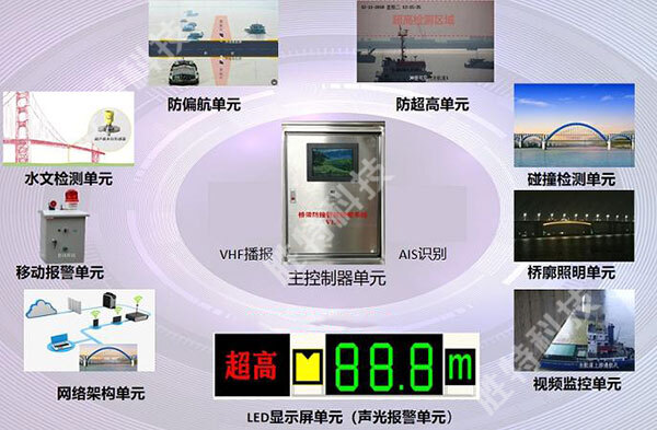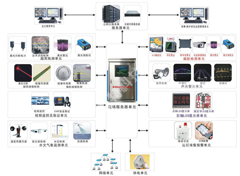 橋梁防撞智能主動(dòng)預(yù)警系統(tǒng)是一個(gè)多功能的橋梁船舶防撞綜合監(jiān)控系統(tǒng),采用激光對(duì)過(guò)往船只探測(cè)、熱成像監(jiān)測(cè)船舶是否偏離航道、電子圍欄預(yù)警航道偏離、AIS船舶身份識(shí)別預(yù)警、VHF無(wú)線電預(yù)警等現(xiàn)代智能技術(shù),通過(guò)視頻監(jiān)控、無(wú)線數(shù)據(jù)傳輸、聲光報(bào)警等方式對(duì)橋梁防船撞做出提前預(yù)警。